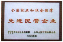 "創人民企業,做不朽文章!"是集團的創業精神和目標。在企業自身的發展中,公司積極承擔起社會責任,通過社會資助、解決就業等方式,創業回報社會。2004年3月集團被國家勞動和社會保障部,全國工商聯評為"全國就業和社會保障先進民營企業"。在被表彰的125家先進民營企業中,集團就業和社會保障綜合指數名列第三位。