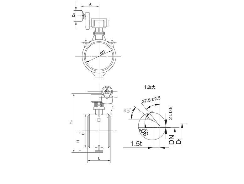 產(chǎn)品名稱及型號(hào):對(duì)焊式金屬密封蝶閥 D36(3/2)(H/W/W)