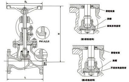【J41H 型 PN25 鋼制截止閥產品外形及結構尺寸】